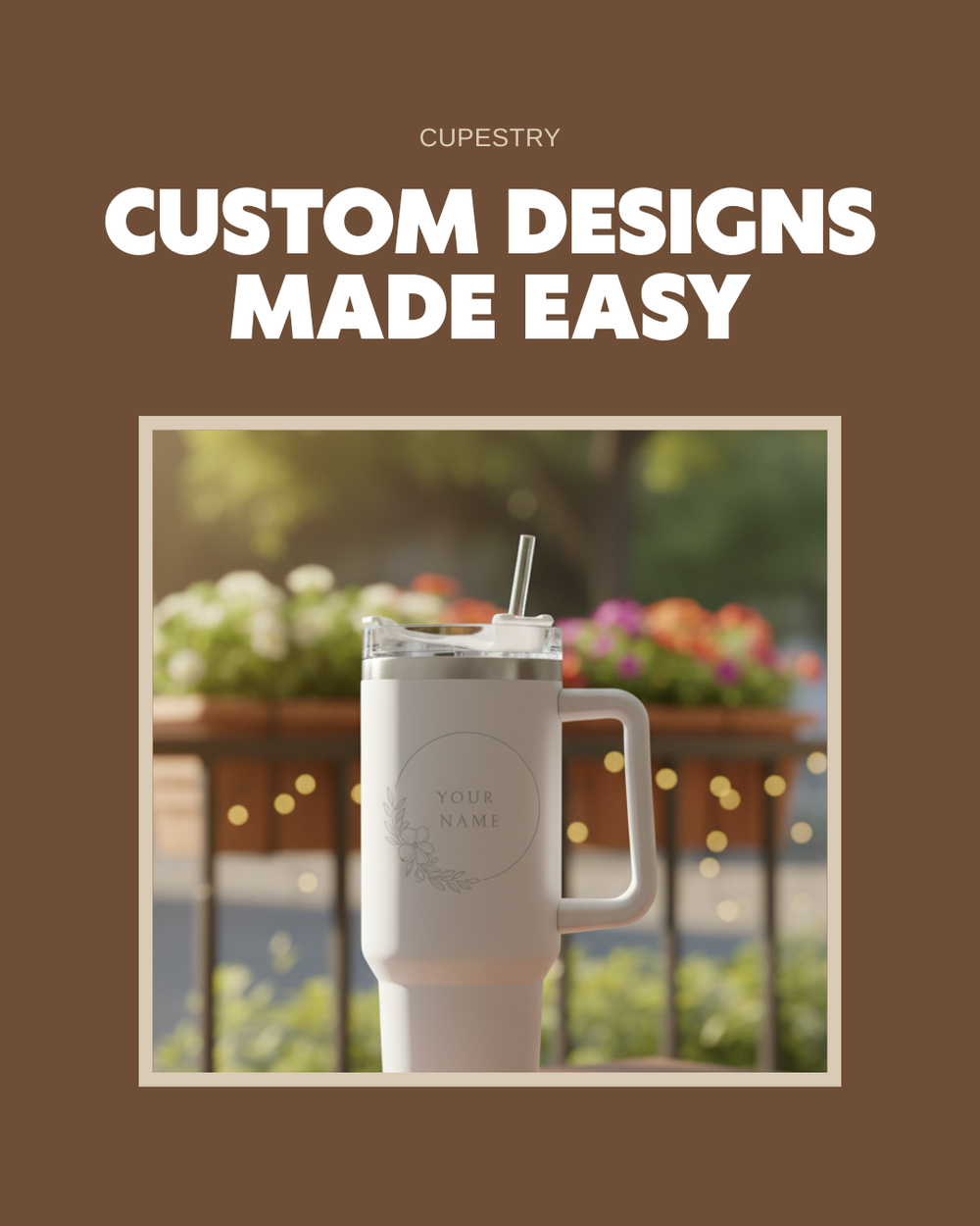 We specialize in high-quality drinkware that you can customize with your own unique designs. Whether you're looking for personalized mugs, tumblers, or water bottles, we bring your vision to life with premium printing and durable materials.